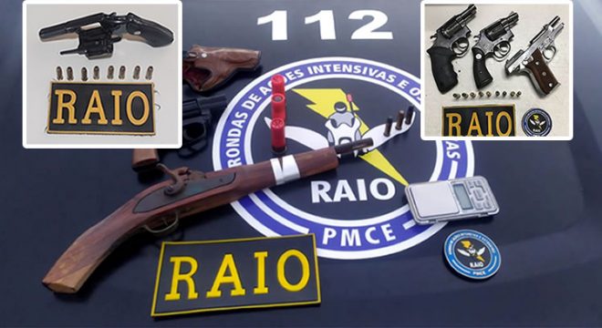 Só nesta quinta-feira militares do RAIO prenderam dois jovens, apreenderam um menor, recolheram três revólveres, uma pistola e garrucha em Barbalha, Caririaçu e Aurora