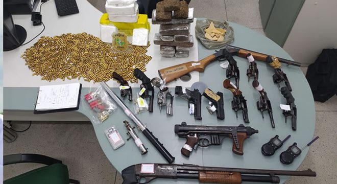 Somente hoje oito armas de fogo foram recolhidas além das que os policiais civis já tinham apreendido dentro dessa mesma operação tendo à frente o Núcleo de Combate ao Tráfico de Drogas (NCTD) da 20ª Delegacia Regional de Polícia Civil. Hoje foram recolhidas duas pistolas calibre 9mm; uma metralhadora Beretta M12 calibre 9mm; uma espingarda calibre 12; dois revólveres calibres 38 e outro calibre 357.