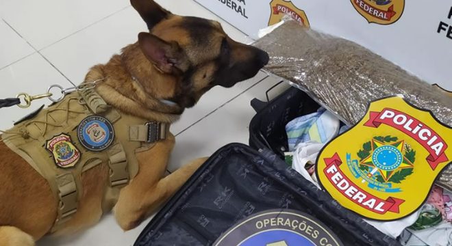 A ação foi constatado após flagra de cão detector de drogas. O animal, da raça belga malinois, atua na Delegacia de Repressão a Entorpecentes da PF e farejou o produto suspeito na bagagem.