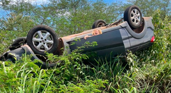 Carro capotou às margens da CE-384 em Mauriti. Foto:Reprodução