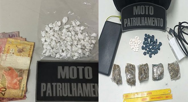 Já na tarde desta segunda-feira equipes do Moto Patrulhamento e Subagência de Inteligência se depararam com um homem numa das ruas do bairro Campo Alegre o qual correu jogando algo num matagal. Os PMs não conseguiram prendê-lo e apreenderam cinco embalagens plásticas totalizando 49 gramas de maconha, 31 comprimidos de Ecstasy (MDMA), mais 25 comprimidos tóxicos de Hemitartarato de Zolpidem, dois pedaços de serra e um carregador de celular.