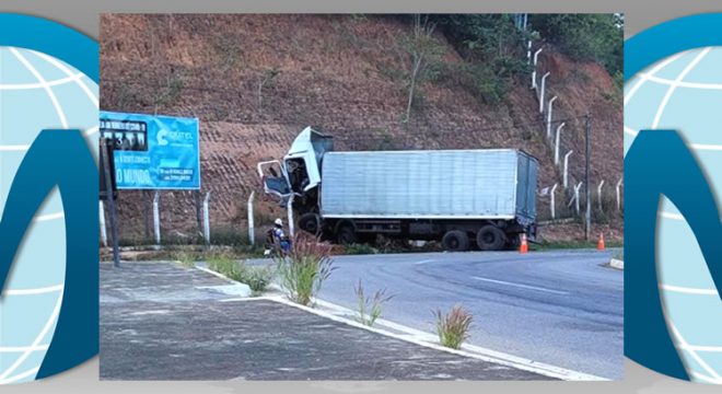 Caminhoneiro atirou o veículo contra uma barreira (Foto: Reprodução)