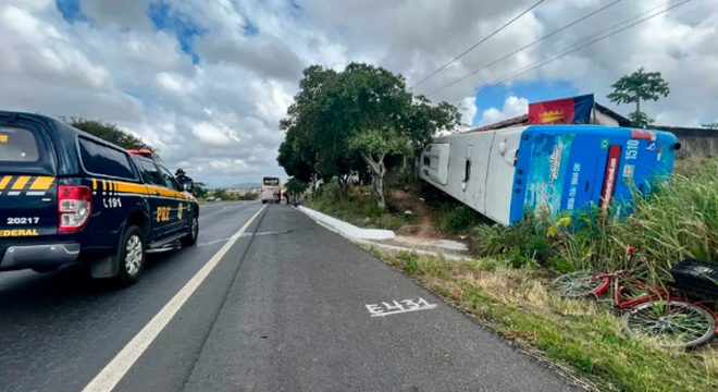 Ônibus com romeiros de João Pessoa tomba à caminho de Juazeiro do Norte; motorista morreu