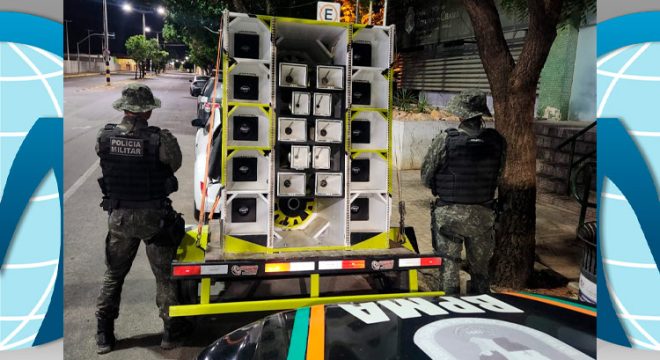 Mais uma ação de militares da Polícia do Meio Ambiente no combate à poluição sonora em Juazeiro, resultou na apreensão de um paredão. Foi por volta das três horas da madrugada desta segunda-feira junto à loja de conveniência do Nosso Posto que funciona na Avenida Ailton Gomes (Lagoa Seca) não muito distante do BPMA no Parque Ecológico. Os PMs foram acionados mediante repetidas denúncias de perturbação ao sossego público e uma patrulha com o Cabo Manoel e os Soldados Ribeiro e Barbosa foi averiguar.