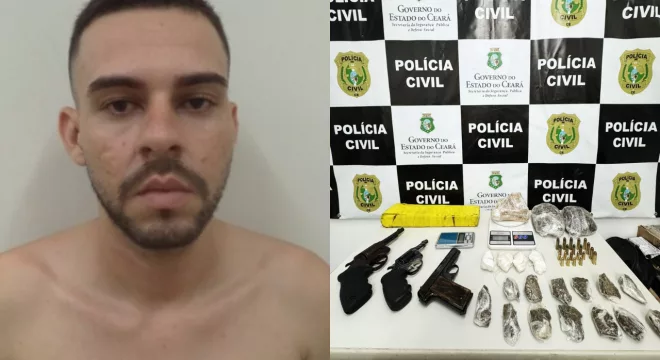 Policiais civis prenderam, nesta quinta-feira, um jovem de 28 anos e apreendeu três armas de fogo e boa quantidade de entorpecentes. Além do flagrante, na Rua Vereador Antonio Braz (Limoeiro), existia contra Cícero Anderson da Silva Morais, o popular “Baladeira”, um mandado em aberto. Ele responde vários procedimentos por crimes de tráfico de drogas e a ordem judicial refere-se a uma regressão de regime numa sentença condenatória a 5 anos e quatro meses de prisão.