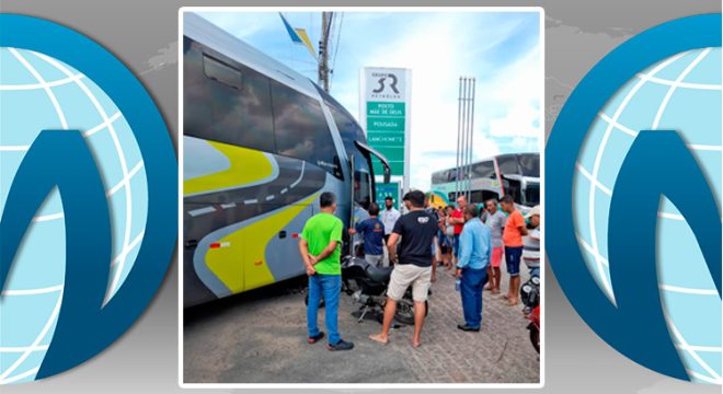Ônibus atingiu apenas a moto ao derivar para um posto em Juazeiro (Foto: Radialista Ronaldo Costa)