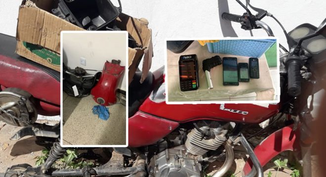 Moto recuperada e vários pedaços de outras apreendidos no bairro João Cabral (Foto: Reprodução)
