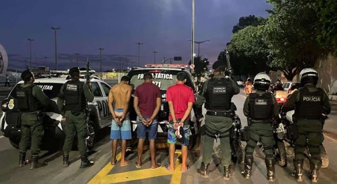Trio foi preso pela PM numa casa no bairro Frei Damião e levado à Delegacia de Polícia Civil de Juazeiro (Foto: Reprodução)
