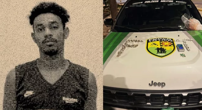 Gabriel foi preso com uma pistola bereta e as drogas abandonadas por traficantes noutra ação da PM .
