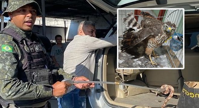 O Batalhão de Polícia do Meio Ambiente (BPMA), da Polícia Militar do Ceará (PMCE), resgatou, na segunda-feira (26), um gavião-carijó e uma cobra jiboia, em Juazeiro do Norte. Os animais resgatados foram encaminhados para uma unidade parceira da PMCE.