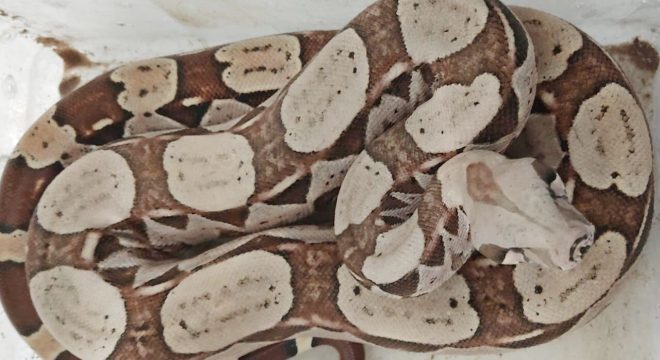A Polícia Militar do Ceará (PMCE) foi acionada pela Coordenadoria Integrada de Operações de Segurança (Ciops) da Secretaria da Segurança Pública e Defesa Social (SSPDS) neste final se semana, para resgatar uma jiboia que estava no quintal de uma residência, no Sítio Catolé, Zona Rural de Juazeiro do Norte.