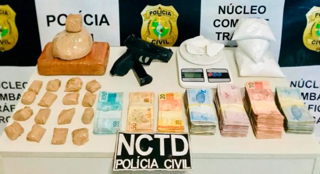Já na segunda-feira (19) a corporação havia detido Tiago Nemezio da Silva Cavalcante, de 27 anos. Ele foi preso portando um revólver calibre 38 com três munições, uma prensa hidráulica, uma balança de precisão, um aparelho celular e dinheiro em espécie, além de quatro quilos de cocaína e cerca de um quilo de crack. Tiago foi detido com apoio do Departamento de Inteligência da Polícia (DIP), que o identificou como suspeito de tráfico de drogas.