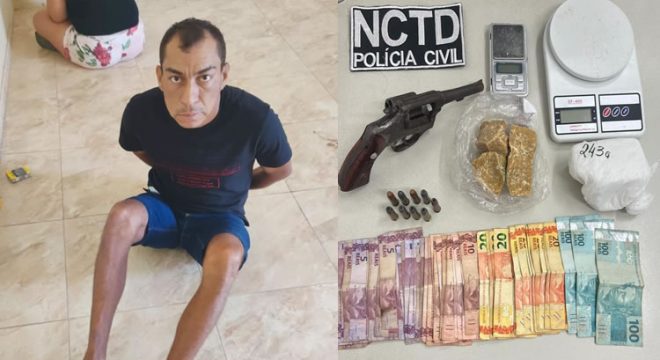 Já na casa dele, os policiais foram recebidos por sua companheira Mikaele Alves, onde encontraram 300 gramas de crack, 250 gramas de cocaína, duas balanças de precisão, R$ 1.000, 00 em dinheiro, além de um revólver calibre 38 e munições. O casal foi apresentado na 20ª DRPC para os devidos procedimentos e a polícia aproveita para lembra o número do seu WhatsApp (2157-8021) a fim de acolher denúncias de crimes com garantia do sigilo quanto a fonte.