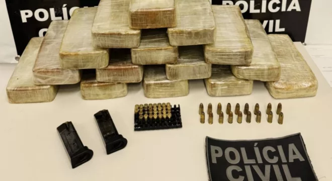 Drogas e munições apreendidas pela Polícia Civil na Rodovia Padre Cícero.