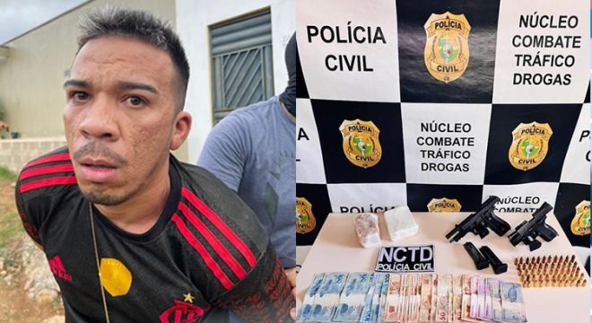 Drogas, pistolas, dinheiro e munições apreendidos em Jardim com três pessoas, sendo uma delas “Cabelim” considerado de alta periculosidade (Foto: Reprodução)