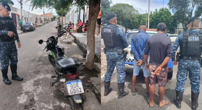 Ações da Polícia Municipal nesta quinta-feira resultaram na recuperação de uma moto levada de seu proprietário e a prisão de dois homens que tinham praticado furto no PSF do Triângulo. Por volta das 17h30min uma equipe da PMu foi acionada diante da informação de uma moto abandonada. Os policiais estiveram na Rua São Damião (Santa Tereza) em Juazeiro e se depararam com uma Mottu Sport 110 de cor preta e placa DOR0D82 estacionada a qual tinha sido furtada pela madrugada.