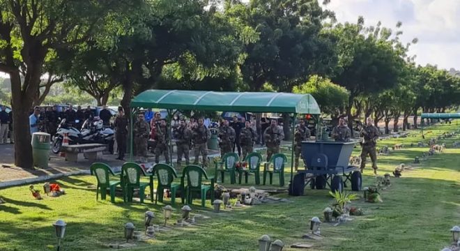 Assim como aconteceu pela manhã, no enterro do agente Raimundo Bonifácio — o outro agente morto — houve um momento de homenagem com uma salva de tiros realizada pelos colegas de profissão. O cortejo até o local do sepultamento durou cerca de 20 minutos.