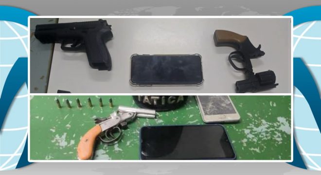 Simulacros de pistola e revólver apreendidos com trio e mais a pistola recolhida com Ismael após assaltar mulher (Foto: Reprodução)