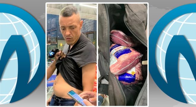 Preso em Juazeiro homem furtando picanha de um supermercado (Foto: Reprodução)