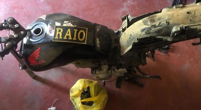 Moto roubada e em fase de desmonte no Crato (Foto: Reprodução)