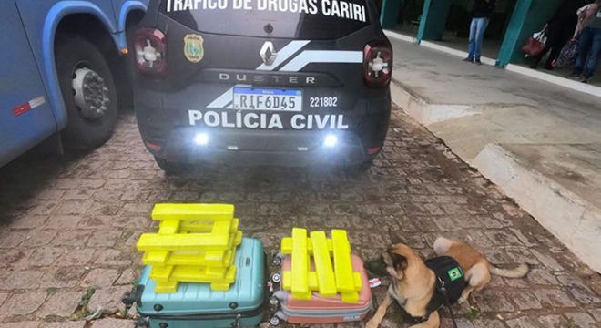 A Polícia Civil afirma que as equipes policiais verificaram o bagageiro do veículo e encontraram duas malas, uma de cor verde onde estavam escondidos 12 tabletes de maconha pesando 9,5 quilos; e na mala de cor rosa, havia sete tabletes de maconha pesando 5,3 quilos, totalizando aproximadamente 15 quilos de drogas. A suspeita foi conduzida para Delegacia Regional de Juazeiro do Norte, onde foi autuada em flagrante por tráfico interestadual de drogas.