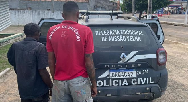 Dois homens foram presos e um adolescente apreendido sob acusação de homicídio qualificado em Missão Velha, enquanto a polícia de Milagres prendeu agricultor acusado de estupro. Policiais civis da Delegacia de Missão Velha cumpriram mandados judiciais prendendo em Aurora José de Jesus de Lima, de 34, no Sítio Grossos, João Severo de Lima, de 58, no bairro Araça, e um menor de 17 anos no Sítio Riacho Fundo.