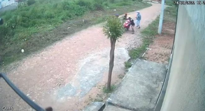 Momento em que a garota era assaltada pelo trio (Foto: Reprodução/Vídeo)