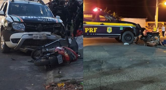 Viatura da PM colidiu com moto em Juazeiro e da PRF em Brejo Santo