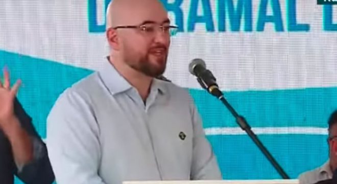 O presidente do BNB, Anderson Possa, participa nesta quarta-feira, 20, de evento com o presidente Jair Bolsonaro, em Russas, no Ceará.(Foto: Reprodução/ TV Brasil)