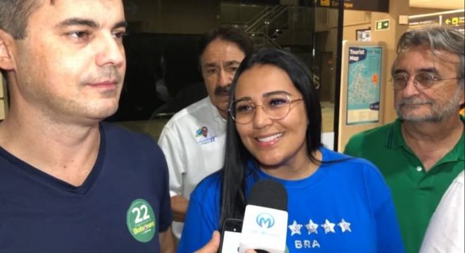 Ao lado do Deputado, Capitão Wagner (União Brasil), Dayany falou com profissionais da imprensa do Cariri no Aeroporto Orlando Bezerra de Menezes, em Juazeiro. Na ocasião, disse a Toni Sousa e Guto Vital, que seu mandato será uma continuidade do trabalho de seu esposo.