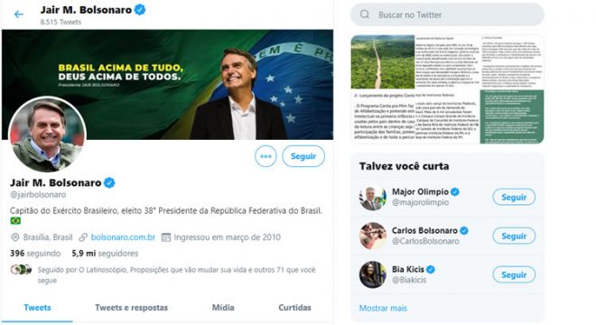 O presidente Jair Bolsonaro é o terceiro chefe de governo mais popular do mundo nas redes sociais. O mandatário brasileiro fica atrás apenas de Narendra Modi, primeiro-ministro da Índia, e do presidente dos EUA, Donald Trump. É o que aponta o Índice de Popularidade Digital (IPD), elaborado pela consultoria Quaest a pedido do jornal O Estado de S. Paulo. A exemplo do presidente norte-americano, Bolsonaro utiliza as redes sociais para comunicar atos de governo, atacar adversários e criticar a imprensa.