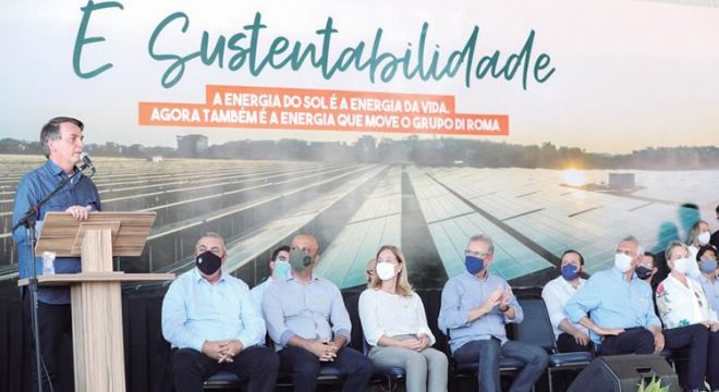 Inauguração da usina solar do grupo da deputada Magda Mofatto contou com Bolsonaro e Caiado. (Foto: Presidência da República)