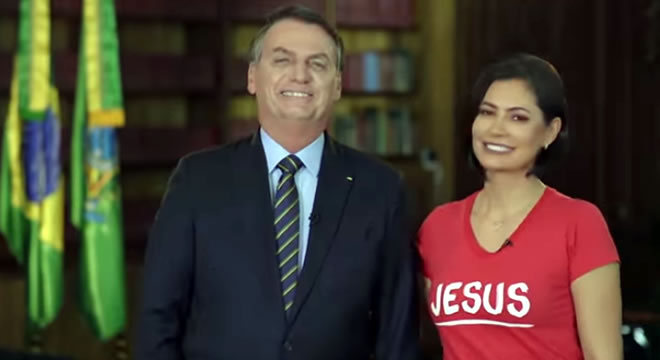 Jair Bolsonaro fez análise do primeiro ano de mandato ao lado da primeira-dama Michele em pronunciamento de Natal (Reprodução)