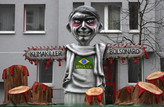 A política ambiental do Governo Bolsonaro foi um dos temas explorados no Carnaval alemão. Em Düesseldorf, o presidente foi retratado em alegoria em alusão aos incêndios e desmatamento na Amazônia.