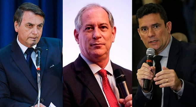 Jair Bolsonaro, Cid Gomes e Sergio Moro. (Reprodução)