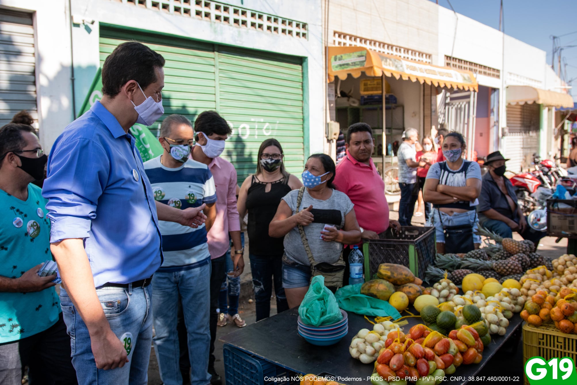 Glêdson Bezerra e o vice Giovanni Sampaio durante visita ao mercado do Pirajá (Foto: Divulgação)