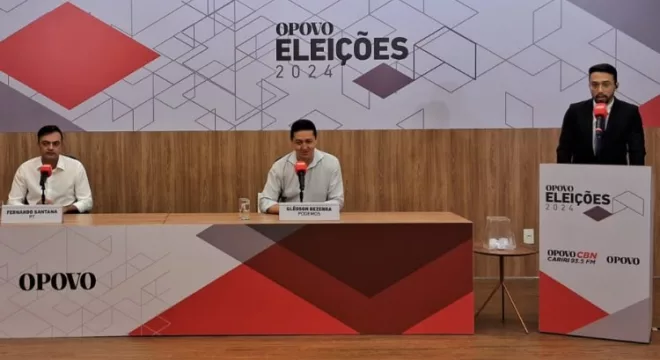 Os candidatos à Prefeitura de Juazeiro do Norte, Glêdson Bezerra (Podemos), atual prefeito e candidato à reeleição, e Fernando Santana (PT), participaram do debate promovido pelo Grupo O POVO de Comunicação, na noite dessa quarta-feira (21). O evento foi marcado por discussões intensas de temas como saneamento básico, infraestrutura urbana e até sobre gramática.