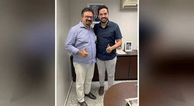 O deputado estadual Davi de Raimundão recebeu o prefeito de Caririaçu, Acácio Leite, no seu gabinete na Assembleia Legislativa em Fortaleza. O encontro foi marcado pela discussão de uma imensa pauta de importantes projetos do interesse daquele município. De cara, o jovem parlamentar já assegurou recursos para a área de saúde e prometeu “bater as portas” do governador Elmano de Freitas no sentido de conseguir verbas para obras estruturantes em Caririaçu.