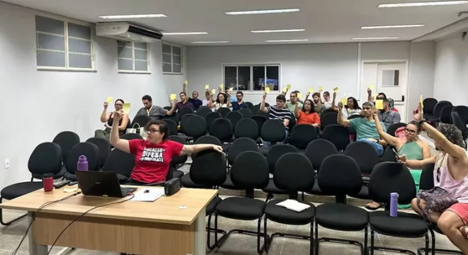 Votação em assembleia geral realizada na UFCA, em Juazeiro do Norte. Foto: Reprodução / Redes Sociais