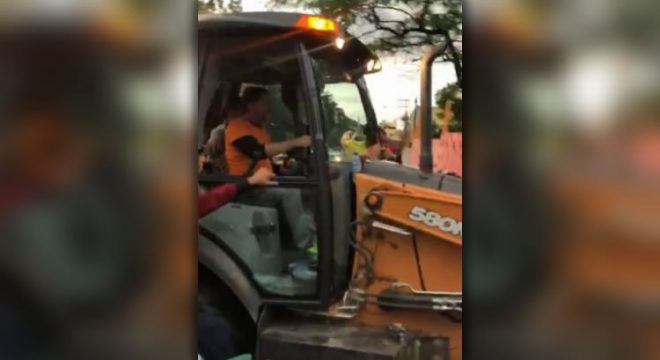 Cid dirigiu uma retroescavadeira contra o portão do 3º Batalhão da Polícia Militar do município de Sobral (Reprodução)