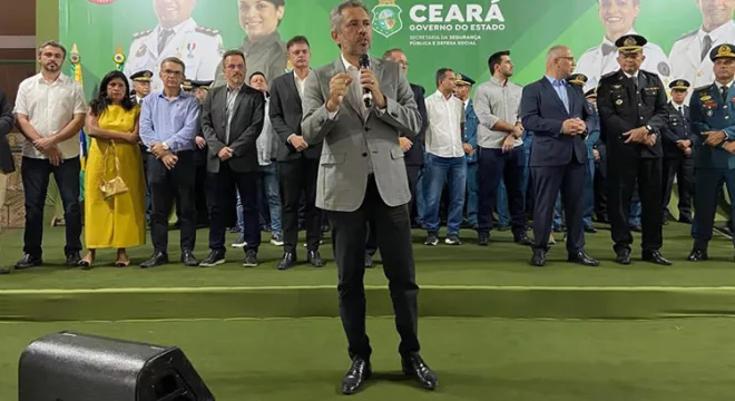 O governador Elmano de Freitas (PT) anunciou a criação de uma ala exclusiva no Hospital Regional do Cariri (HRC) para atender policiais feridos em ações de serviço. A declaração foi feita nesta quinta-feira (26), durante a cerimônia de promoção de 278 policiais e bombeiros militares, realizada no ginásio da Universidade Regional do Cariri (Urca), no Crato.