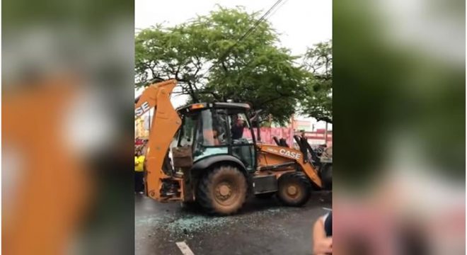 Cid Gomes é baleado ao tentar invadir um batalhão da PM com trator (Reprodução)