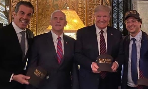 O secretário de Comunicação da Presidência, Fábio Wajngarten, ao lado do presidente americano Donald Trump e do vice-presidente americano Mike Pence (Instagram/Reprodução)