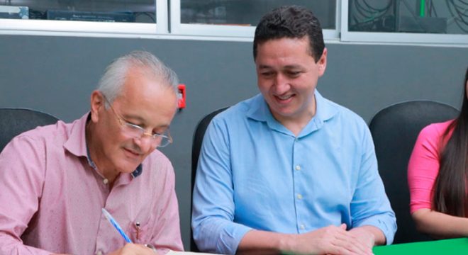 Giovanni Sampaio ao lado do prefeito Glêdson Bezerra. Foto: Ascom Juazeiro do Norte