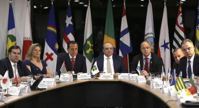 O governador de São Paulo, João Doria, do Distrito Federal, Ibanez Rocha e do Rio de Janeiro, Wilson Witzel, participam da 5ª Reunião do Fórum de Governadores - 11/06/2019 (José Cruz/Agência Brasil)