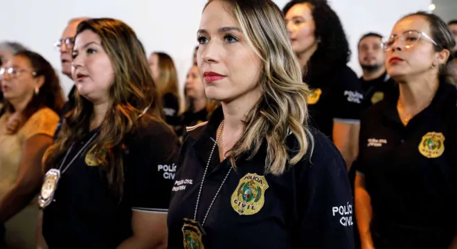 O governador do Ceará, Elmano de Freitas (PT), sancionou a Lei de Paridade dos Policiais Civis, nesta quarta-feira (3). A solenidade ocorreu no Palácio da Abolição, em Fortaleza, com a presença de agentes das Forças de Segurança do Estado e outras autoridades.