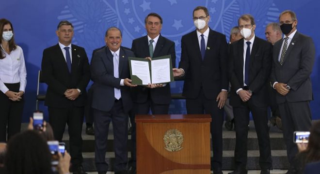 Em seu discurso, o presidente Jair Bolsonaro disse que a assinatura do protocolo de intenções é mais uma entre as “duas ou três ações excepcionais” que semanalmente seu governo anuncia.