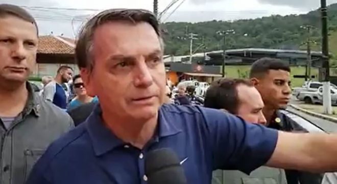 O presidente Jair Bolsonaro aproveitou a manhã deste sábado (22) para circular pelas ruas do Guarujá, no litoral de São Paulo, onde passa o carnaval. Rodeado de seguranças, tomou café em uma padaria, visitou dois mercados e ainda ‘embarcou’ em um ônibus municipal para cumprimentar moradores.