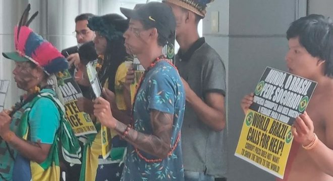 Indígenas manifestam contra eleição de Lula em aeroporto de Brasília