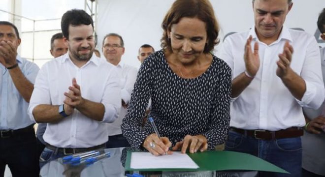 Mais cedo, a chefe do executivo estadual assinou a ordem de serviço do convênio que irá permitir a implantação do novo Centro Administrativo Municipal de Juazeiro do Norte.